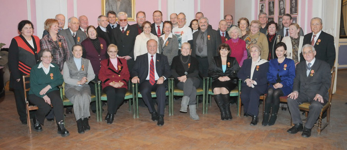 Один из награжденных, М.Е. Синькевич, рассказал, что представляет общественную организацию несовершеннолетних узников фашистских концлагерей. Ею учреждена медаль «Непокоренные», которая вручается государственным, политическим, религиозным деятелям. В частности, этой награды был удостоен покойный Патриарх Алексий II. Отметив большой вклад Г.А. Зюганова в дело патриотического воспитания детей и молодежи, М.Е. Синькевич вручил медаль «Непокоренные» лидеру КПРФ.