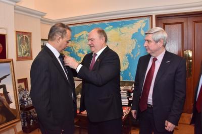 В завершение встречи Г.А. Зюганов вручил кубинскому герою памятную медаль ЦК КПРФ и ценные подарки.
