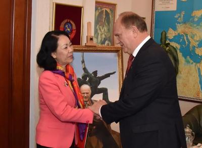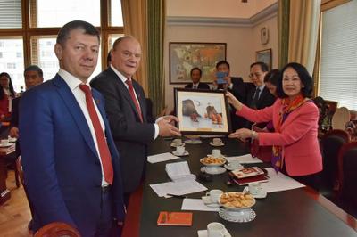 Г.А. Зюганов и Чыонг Тхи Май обсудили вопросы плодотворного сотрудничества между нашими братскими партиями, а также всестороннего развития отношений между Россией и Вьетнамом. «Вьетнам является нашим верным партнером и другом. Сегодня КПРФ оказывает максимальное содействие в восстановлении в полном объеме экономических и культурных связей, которые существовали между СССР и Вьетнамом и были разрушены в 90-е годы», - подчеркнул Г.А. Зюганов.