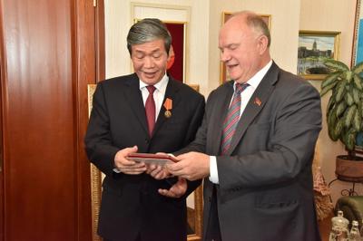 Г.А. Зюганов наградил высокого вьетнамского гостя памятной медалью ЦК КПРФ «70 лет Великой Победы».