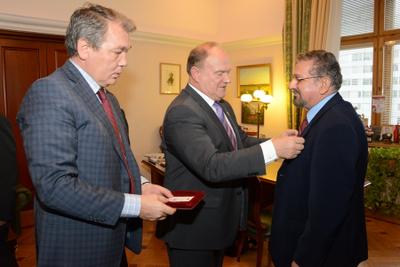 В ходе встречи Г.А. Зюганов вручил Димитрису Христофиасу памятный подарок. Медали ЦК КПРФ «90 лет образования СССР» были вручены Президенту Общества Кипр-Россия Харису Трассу и члену Правления Общества Кипр-Россия Василиу Андреасу.