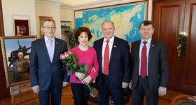 В четверг, 18 февраля 2016 года, состоялась встреча лидера КПРФ Г.А.Зюганова, его заместителя Д.Г.Новикова, Председателя Правления Движения "Русский Лад" В.Г. Позднякова с заслуженным деятелем искусств России, заслуженной артисткой России, художественным руководителем - директором Московского Дома Романса Г.С. Преображенской.