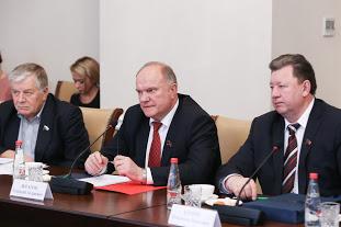 Г.А.Зюганов, открывая встречу, подчеркнул, что фракция, отстаивая интересы отечественного производителя, всегда настроена на конструктивное сотрудничество. Актуальность этого значительно выросла в условиях кризиса и санкций Запада против России. Поддержав во многом внешнюю политику Президента и Правительства, фракция настаивает на изменении внутреннего социально-экономического либерального курса, приведшего страну к кризисному состоянию. Предпринимаемые Правительством меры не решают возникших проблем, а, скорее, их усугубляют. Особенно то, что касается повышения ключевой ставки до 17%, перекрывшее доступ предприятиям к кредитам. Актуальной остается идея новой индустриализации страны на новейшей научно-технической основе. Именно в этом контексте должен рассматриваться вопрос об импортозамещении. Очень важно в рамках антикризисных мероприятий обратить пристальное внимание на высокотехнологические компании среднего уровня, особенно на те, которые занимаются производством различных электронных устройств, микроэлектроники. Нужно сделать все возможное для предотвращения их банкротств, для того, чтобы они успешно развивались и в условиях кризиса, ибо это вопрос и нашей национальной конкурентоспособности, и нашей национальной безопасности.