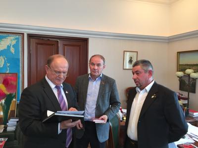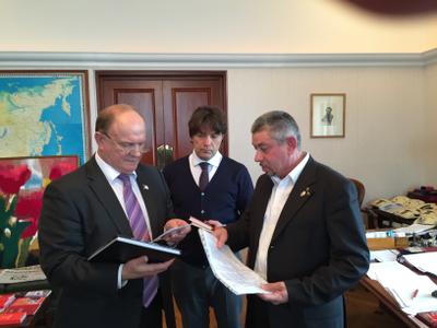 В Москве состоялась встреча председателя ЦК КПРФ, руководителя фракции КПРФ в Государственной Думе Г.А. Зюганова с одним из потомков Ф.Э. Дзержинского, бывшим морским летчиком В.М. Дзержинским.