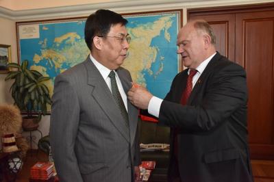 Прием состоялся в связи с завершением Чен Цзиньсянь миссии в Москве и возвращением на Родину. Председатель ЦК КПРФ Г.А. Зюганов наградил Чен Цзиньсянь памятной медалью ЦК КПРФ «70 лет Победы».
