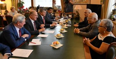 Во встрече также принял участие Чрезвычайный и Полномочный Посол Республики Куба в Российской Федерации Херардо Пеньяльвер Порталь.