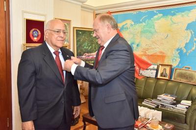 Председатель ЦК КПРФ, руководитель фракции КПРФ в Государственной Думе Г.А. Зюганов встретился с Рикардо Кабрисасом Руисом – заместителем председателя Совета Министров Республики Куба, министром экономики и планирования, сопредседателем российско-кубинской межправительственной комиссии по торгово-экономическому и научно-техническому сотрудничеству.
