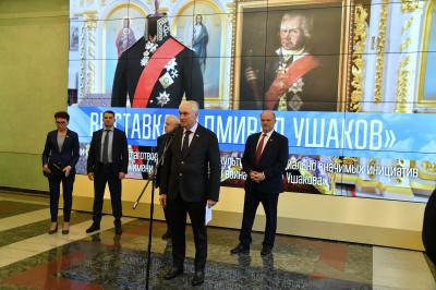 В своем выступлении Г.А. Зюганов высоко оценил значение проводимой выставки. Особую актуальность эта патриотическая выставка, по его мнению, приобретает в дни проведения военно-политической операции по освобождению Украины от нацизма, бандеровщины и фашизма. «Легенда русского флота Федор Ушаков прожил 72 года, из них 46 лет служил в нашем флоте. Он победил во всех сражениях, не потерял ни одного корабля, ни один его матрос не попал в плен. Всевышний его берег: у Ушакова не было ни одной царапины во всех его сражениях», - рассказал Геннадий Андреевич.