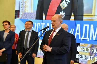 В Государственной Думе открылась выставка, посвященная знаменитому русскому флотоводцу и адмиралу Федору Ушакову. На выставке выступил Председатель ЦК КПРФ, Руководитель фракции КПРФ в Госдуме Г.А. Зюганов.