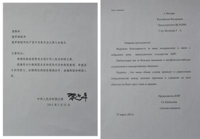 Г.А. Зюганову передали благодарственное письмо от Си Цзиньпина