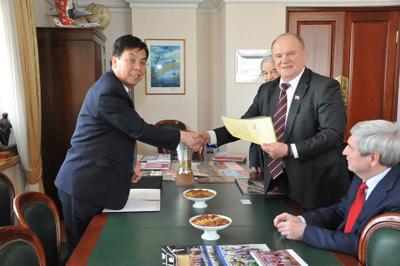 Лидер КПРФ Г.А. Зюганов и товарищ Чэнь Цзинсянь обменялись мнениями о политической и экономической ситуации в мире, России и Китае. Геннадий Андреевич подчеркнул, что укрепление взаимоотношений между нашими странами и народами по-прежнему для КПРФ имеет принципиальное значение. Стороны также договорились о поездке в текущем году делегации молодых российских коммунистов в Китай на учебу.