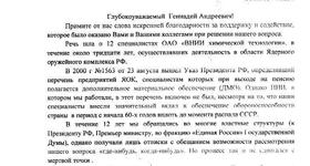 Руководителю фракции Коммунистической партии Российской Федерации в Государственной Думе Федерального Сорания Российской Федерации Г.А. Зюганову от бывших специалистов Всесоюзного НИИ химической технологии (ОАО «ВНИИХТ»), осуществлявших деятельность в области ядерного оружейного комплекса Е.А. Филиппова, Т.С. Дакаловой, В.Г. Фоменкова.