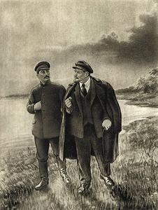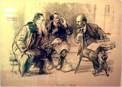 — Из всех актёров, которых я видел, — продолжал Кржижановский, — Плотников наиболее близок к истине. В пьесе «Человек с ружьём» я его без слёз смотреть не мог — стоит передо мной живой Ленин, и только! Страшно даже становится, и голос у него, знаете, очень верный... Ведь иные, узнав, что Ленин грассировал, нажимают на это и переигрывают, а Плотников нет, у него всё в меру, всё верно. Вот посмотрите. — Кржижановский поднялся со стула, достал с полки фотографию Плотникова в роли Ленина и дал её мне. Действительно, даже по внешнему сходству это был отличный портрет. — Сейчас, — продолжал Кржижановский, — многие, к сожалению, берутся изображать Ленина, не имея для этого достаточного понимания. Вот, к вашей чести, в рисунках этих вы постигаете тайну изображения Ленина, он таким был и здесь, и вот тут, и там, и вот со стаканом чая, очень верно...