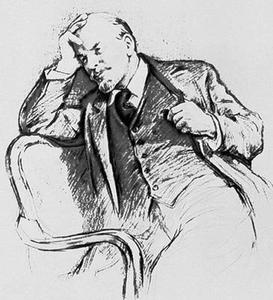 Из 60 рисунков, которые я показал Кржижановскому, 51 не встретил с его стороны замечаний, а остальные были им отложены как спорные, о которых он имел, по его выражению, субъективное мнение. Особое внимание в будущей моей работе Кржижановский посоветовал обратить в портрете на лобную, как он сказал, площадку, — «это место у Ленина было, знаете, особенным, удивительным, и не у всех художников это выходит. И дело тут не только в размере лба, его высоте, а в красоте пропорций — запомните!» — предостерегающе указал Кржижановский».