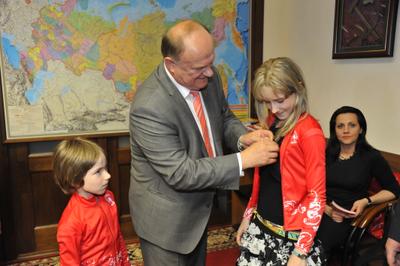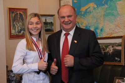 Ещё одна наша гордость - Марьяна Наумова. Это уникальная 13-летняя школьница, мастер спорта международного класса, по некоторым данным, является самой сильной девочкой в мире. Марьяна - абсолютная чемпионка мира среди подростков 13-15 лет и первая среди взрослых женщин весом до 52 кг. Она последовательно установила более 15 мировых рекордов в жиме лежа. Последний официально зарегистрированный - 90 килограммов, но на тренировках уже взят вес 101 кг. Марьяна пришла в наш спортивный клуб сама. Она хотела поехать на чемпионат мира в Ригу – была уверена в том, что займет там первое место, однако ни одно спортивное ведомство в России не готово было оплатить ей поездку на соревнования. Мы решили поддержать юную спортсменку, и с тех пор Марьяна с нами. Более того, после победы в Риге Марьяна решила на всех международных соревнованиях выступать под эмблемой спортивного клуба КПРФ. Например, два месяца назад на соревнованиях в Лас-Вегасе Марьяна выступала в пионерской форме, и не случайно: в прошлом году девочка вступила в пионерскую организацию.