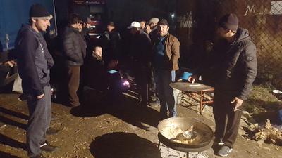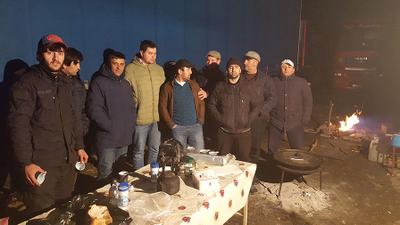Мы подъезжаем к Хасавюрту ночью, недалеко от блокпоста с автоматчиками в бронежилетах и касках вдоль обочины стоит около сотни фур. Рядом с одной из них столик, горит костер, раздают плов, днем чабаны принесли двух барашков. Дальнобойщики Расул Шавруханов, Камиль Абдурашидов, Аслудин Умаханов, Магомед Бадаев и еще несколько человек, оставшихся на ночное дежурство, рассказывают про забастовку.