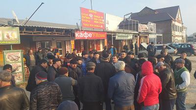 Утром в поселке Манас, что в Карабудахкентском районе, та же самая картина. Рядом с кольцевой развязкой на обочине и парковке сотни фур и недовольная, гудящая толпа у придорожного кафе.