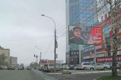 Совсем немного осталось до того момента, когда весь город отпразднует 71-ю годовщину победы Советского народа в Великой Отечественной войне. К этой дате Новосибирское областное отделение КПРФ разместило несколько десятков баннеров с портретом Верховного главнокомандующего Иосифа Сталина и надписью «С Днем Победы!».