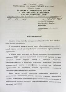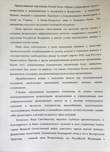 Лидер КПРФ Геннадий Зюганов направил письмо на имя Святейшего Патриарха Кирилла, отметив, что КПРФ – единственная политическая партия, выступившая против закрытия храмов, потребовавшая обеспечить священнослужителей и волонтеров средствами индивидуальной защиты, дезинфекции и пропусками для свободного передвижения по населенным пунктам, предоставить возможность священнослужителям работать в больницах.