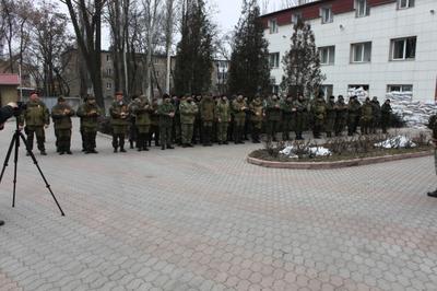 Несколько десятков бойцов подразделения выстроились на плацу. Владимир Родин передал им слова благодарности Председателя ЦК КПРФ Г.А. Зюганова за мужественную защиту своей родины, своей земли, своего права говорить на русском языке и пожелание здоровья и успехов в борьбе.