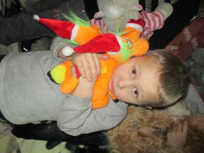 А мы начинаем вручение подарков самым маленьким обитателям центра — для них мы привезли три коробки с мягкими игрушками. Малыши не просят их, не пытаются выхватить друг у друга, не благодарят нас. Все, как один, молча берут протянутого мишку или зайца и начинают рассматривать с неизбывным изумлением, как что-то забытое, какой-то элемент прошлой, мирной жизни. А потом так же молча крепко прижимают их к себе двумя руками. Никакого проявления радости. В глазах — боль утраты. Этих малышей трудно даже назвать детьми, они больше похожи на маленьких старичков. На стене — выставка детских рисунков: птицы счастья с разноцветными хвостами, дети среди цветов, надпись «Мира всем детям Земли!» Вот только птицы эти какие-то понурые, да и цветы колючие и больше напоминают чертополохи или кактусы… Рисунки детей войны.