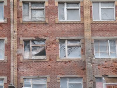 Разбит школьный автобус. Одно из зданий школы, как и многие другие здания в посёлке, разрушено. Второе тоже было подвержено обстрелу — пробоину в стене педагоги и родители учеников заделали своими силами. Вставили выбитые стёкла, залатали крышу. В помещениях школы очень холодно.