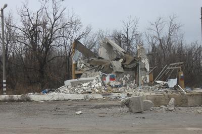 Въезжая на территорию Луганской народной республики, видим страшные разрушения— сёла, расположенные вдоль дороги, уничтожены на две трети: остовы домов без стен и крыш, сгоревшие и поломанные снарядами деревья, замершие сожжённые танки. В поле, которое нужно обрабатывать, готовить к севу, торчат осколки снарядов и мина.