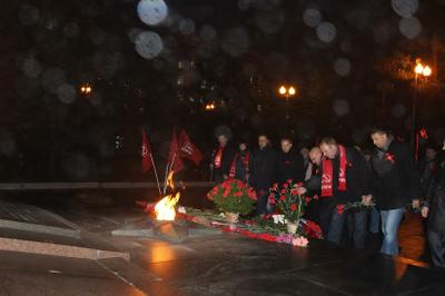 По окончанию торжественного мероприятия коммунисты возложили цветы к Вечному огню.