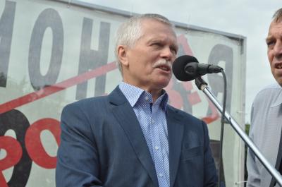 Открылся митинг выступлением депутата Государственной Думы ФС РФ С.М. Пантелеева, который развенчал лукавые аргументы правительства о том, что денег на выплату пенсий без повышения возраста выхода на пенсию в бюджете не хватает. Он перечислил предлагаемые КПРФ способы наполнения бюджета, такие как введение прогрессивной шкалы налогообложения и установление государственной монополии а спиртоводочную продукцию. «В ситуации с пенсионным фондом мы имеет не дыру в бюджете, а дыру в головах у тех, кто предлагает такие бесчеловечные изменения в закон», - заключил Сергей Пантелеев.