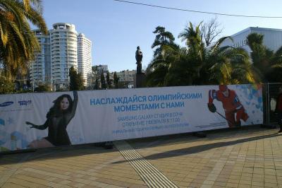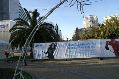 Руководящие краем и городом экс-комсомольцы и экс-коммунисты – глава администрации Краснодарского края А.Н. Ткачёв и глава города-курорта Сочи А. Н. Пахомов – убили, тем самым, сразу двух зайцев. То есть, предоставили фирме-спонсору рекламную площадку в самом центре Сочи и заодно спрятали подальше от глаз спортивных болельщиков и гостей олимпиады так ненавистный им символ великого свершения предков, напоминающий им об их политическом предательстве. А заодно скрыли от взоров гостей плачевное состояние газона и зелёного ограждения из самшита, пришедшего в полную негодность…