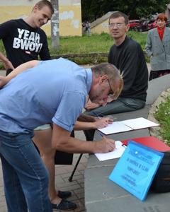 Во время пикета проходил сбор подписей против повышения пенсионного возраста. Свои подписи поставили сотни смолян. Реакция людей самого разного возраста на «медведевскую реформу» – резко негативная.