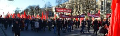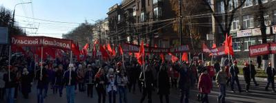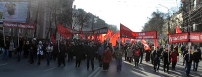 С флагами и транспарантами под бодрые мелодии советских песен демонстранты прошли по главной улице областной столицы – проспекту В.И. Ленина. Многочисленные прохожие приветствовали праздничную колонну с тротуаров. В их реакции чувствовалась ностальгия по тем временам, когда годовщина Великой Октябрьской социалистической революции была в нашей стране государственным праздником.