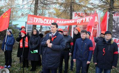 Обращаясь к землякам, первый секретарь Тульского обкома КПРФ Олег Лебедев поздравил собравшихся с 98-ой годовщиной Великой Октябрьской социалистической революции, которая оказала решающее влияние на ход мировой истории. Великий смысл этого праздника в том, что впервые власть капитала была заменена справедливым способом управления. Семьдесят лет человек труда был хозяином своей жизни, хозяином своей страны. К сожалению, мы сегодня потеряли те завоевания социализма, которые отстояли наши прадеды и деды. Для нас, их потомков, сейчас важно сделать правильные выводы.