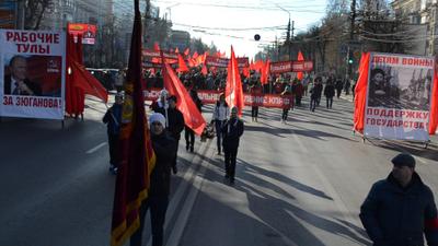 Праздничное шествие, на которое вышло около полутора тысяч туляков, возглавил первый секретарь Тульского обкома КПРФ, депутат Госдумы Олег Лебедев.