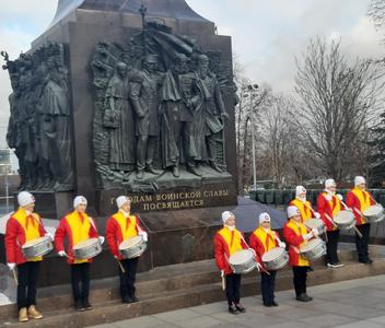 Приятно были видеть и красные пионерские галстуки на участниках детского коллектива барабанщиков, сопровождавших возложение делегатами съезда цветов к мемориальному комплексу, посвященному Городам воинской славы России в Парке Победы».