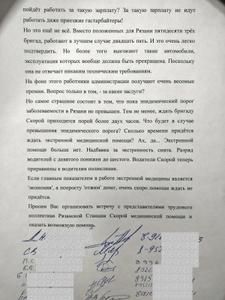 Кроме того, – возмущаются сотрудники, – автопарк станции находится в плачевном состоянии. Большинство машин на службе уже более 9 лет при сроке их допустимой эксплуатации – 5 лет. Из 53 бригад, положенных Рязани с её численностью, на вызовы выезжают от силы 20-25. А время ожидания бригады нередко достигает пяти и более часов!