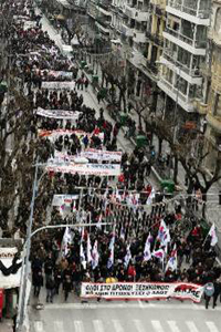 Полноводными реками были забастовочные митинги и демонстрации, состоявшиеся 11-го марта в 68 крупных и малых городах Греции. Рабочие, служащие, молодёжь, женщины, иммигранты и пенсионеры участвовали в демонстрации ПАМЕ (Всерабочий Боевой Фронт). Это былщ 5-й массовой и боевой забастовкой в последнее время и 4-й за месяц.