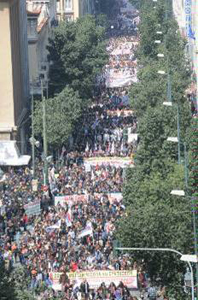 Десятки тысяч демонстрантов требовали отклонения жёстких мер по урезанию доходов и налогообложению, продвинутых капиталом, и уже принятых правительством ПАСОК вместе с националистической ЛАОС и при непосредственной поддержке либералов НД и Ассоциации Промышленников. Многие сделали шаг, впервые приняли участие в забастовке.