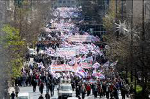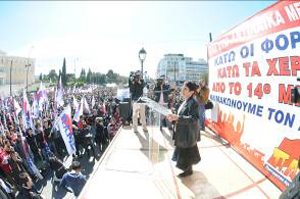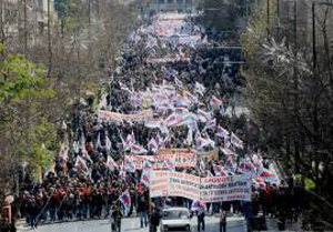 Десятки тысяч демонстрантов наводнили центр Афин и десятков других городов, чтобы осудить сокращение зарплат и пенсий, 30% сокращение пособий Рождества, Пасхи и отпускных, резкое увеличение налогообложения каждой категории товаров и услуг, особенно продуктов массового народного потребления.