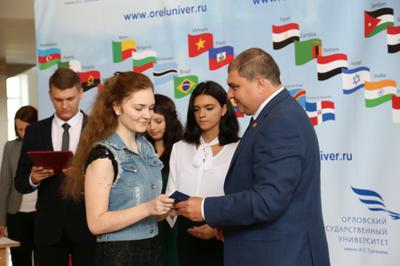 Также студенческие билеты из рук Вадима Потомского получили первокурсники Орловского государственного университета экономики и торговли, Орловского государственного института культуры, филиала Российской академия народного хозяйства и государственной службы при Президенте РФ.