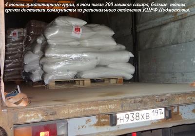 — С гуманитарным грузом, который формируем в Москве и в Подмосковье, мы выезжаем на трассу М-4 «Дон», где к автопоезду присоединяются машины от региональных отделений КПРФ. Груз отправляем еженедельно. В каждом автопоезде не менее 10 машин из 10 регионов, 90 — 110 тонн груза. Главная база находится в совхозе имени Ленина ближайшего Подмосковья.