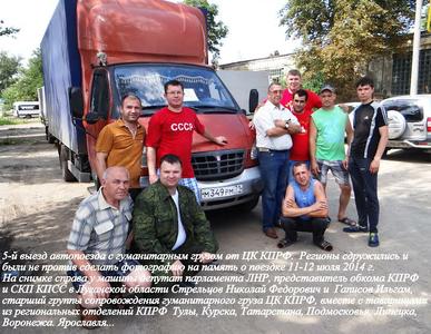 12 июля грузовая «Газель» Саратовского обкома КПРФ в составе автопоезда ЦК КПРФ доставила на границу России с украинским городом Донецком гуманитарную помощь. 90 тонн груза на 10 машинах из 10 регионов: Москвы, Тулы, Подмосковья, Ярославля, Саратова, Воронежа, Липецка, Курска, Калмыкии, Татарстана.