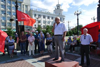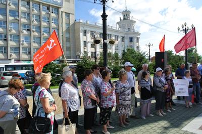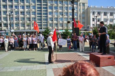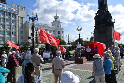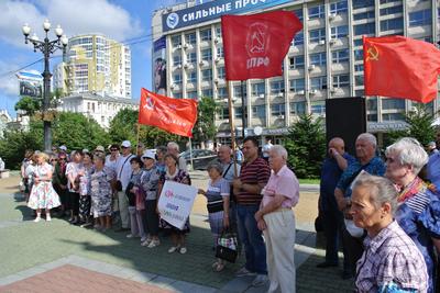 16 августа в Хабаровске состоялся митинг КПРФ против социально-экономической политики власти. Собравшиеся на Комсомольской площади митингующие выразили свой протест против безудержного роста цен, тарифов, обогащения правящей элиты за счет простых тружеников.