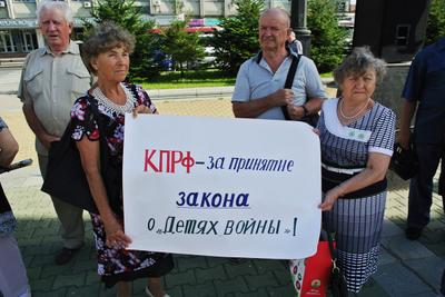 Проблемы социально-экономического характера очень тяжело отражаются на детях войны, которые абсолютно не защищены от бедности, а то и нищеты. Поэтому тема статуса и льгот для детей войны была в очередной раз поднята на митинге. Несмотря на то, что в семнадцати регионах России на местном уровне приняты и работают законы о детях войны, губернатор, правительство и законодательная Дума Хабаровского края третий раз подряд противится принятию краевого закона, на котором настаивает КПРФ. Тормозится принятие данного закона и на федеральном уровне. В результате без реальной поддержки государства сегодня в стране бедствует более двенадцати миллионов, а в крае свыше восьмидесяти тысяч немощных, пожилых граждан страны, кому довелось родиться в 30-х-40-х годах прошлого столетия. Между тем, лучшим образцом и примером в деле формирования подрастающего поколения в духе патриотизма, любви к Родине мог бы стать жизненный пример поколения «детей войны»». Поэтому в резолюции митинга было отражено требование участников митинга – принять федеральный и краевой закон «О детях войны».
