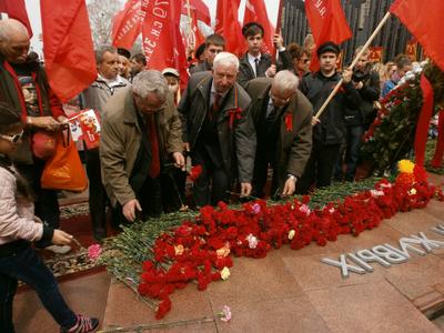 После того, как шествие завершилось на площади Славы, коммунисты и сторонники КПРФ возложили цветы к мемориалу, Вечному огню и памятнику воинам-интернационалистам, а затем, вновь выстроившись в колонну, прошествовали на площадь им. В.И. Ленина, где также отдали дань уважения основателю Коммунистической партии и первого в мире социалистического государства. Можно сказать, что в День Победы коммунисты Хабаровска успешно выполнили свою миссию, не дав обезличить великий праздник и напомнив, как наша страна встречала долгожданную Победу в мае 1945 года.