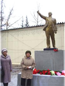 Затем первый секретарь Алданского райкома КПРФ Роза Солнышкина от имени коммунистов Алдана поблагодарила общественные организации и главу Томмота Александра Заверюху за ответственную работу по реставрации практически разрушенной скульптуры Ленина, установлению его на историческое место и вручила почетную грамоту ЦК КПРФ.