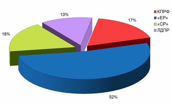 «Единая Россия» получила 38 минут 54 секунд, что составило 20%. На долю ЛДПР пришлось 9% эфирного времени, «Справедливую Россию» показывали 13% от суммарной продолжительности политических телепередач.