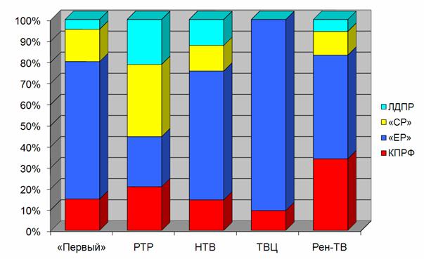 | Телеканал | КПРФ | «ЕР» | «СР» | ЛДПР | |