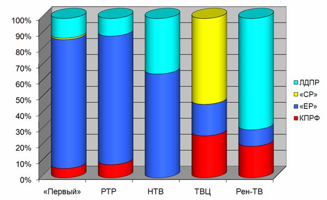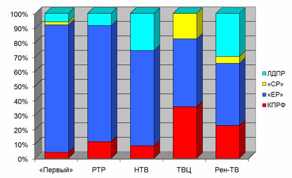 | Телеканал | КПРФ | «ЕР» | «СР» | ЛДПР | |
