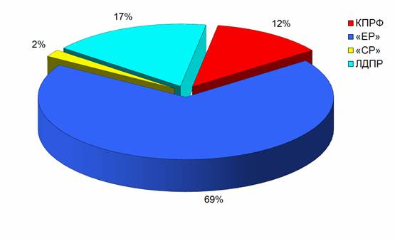 «Единая Россия» получила 1 час 20 минут 5 секунд, что составило 69%. На долю ЛДПР пришлось 17% эфирного времени, «Справедливую Россию» показывали 2% от суммарной продолжительности политических телепередач.